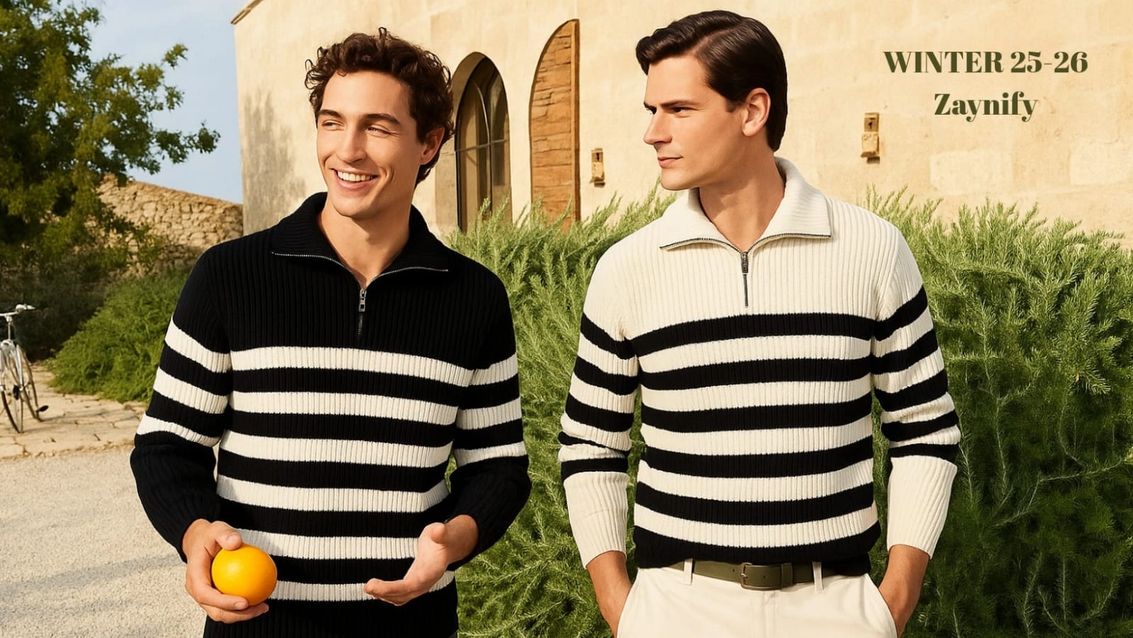 The Striped Knitted Sweater With Half Zipper Black (Unisex )